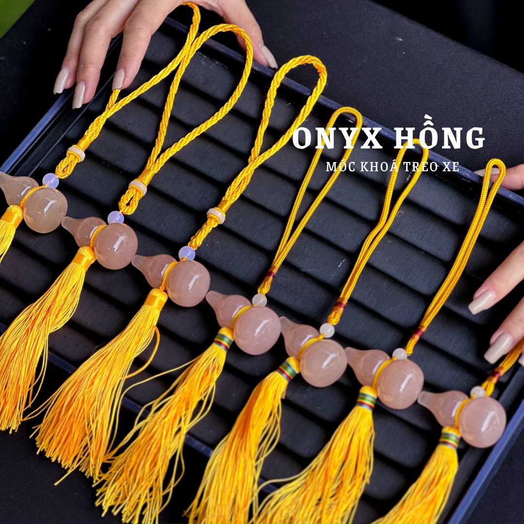 MÓC KHÓA TREO XE ĐÁ ONYX HỒNG TÁC DỤNG VÀ Ý NGHĨA PHONG THỦY GÌ