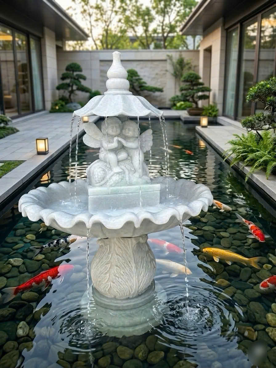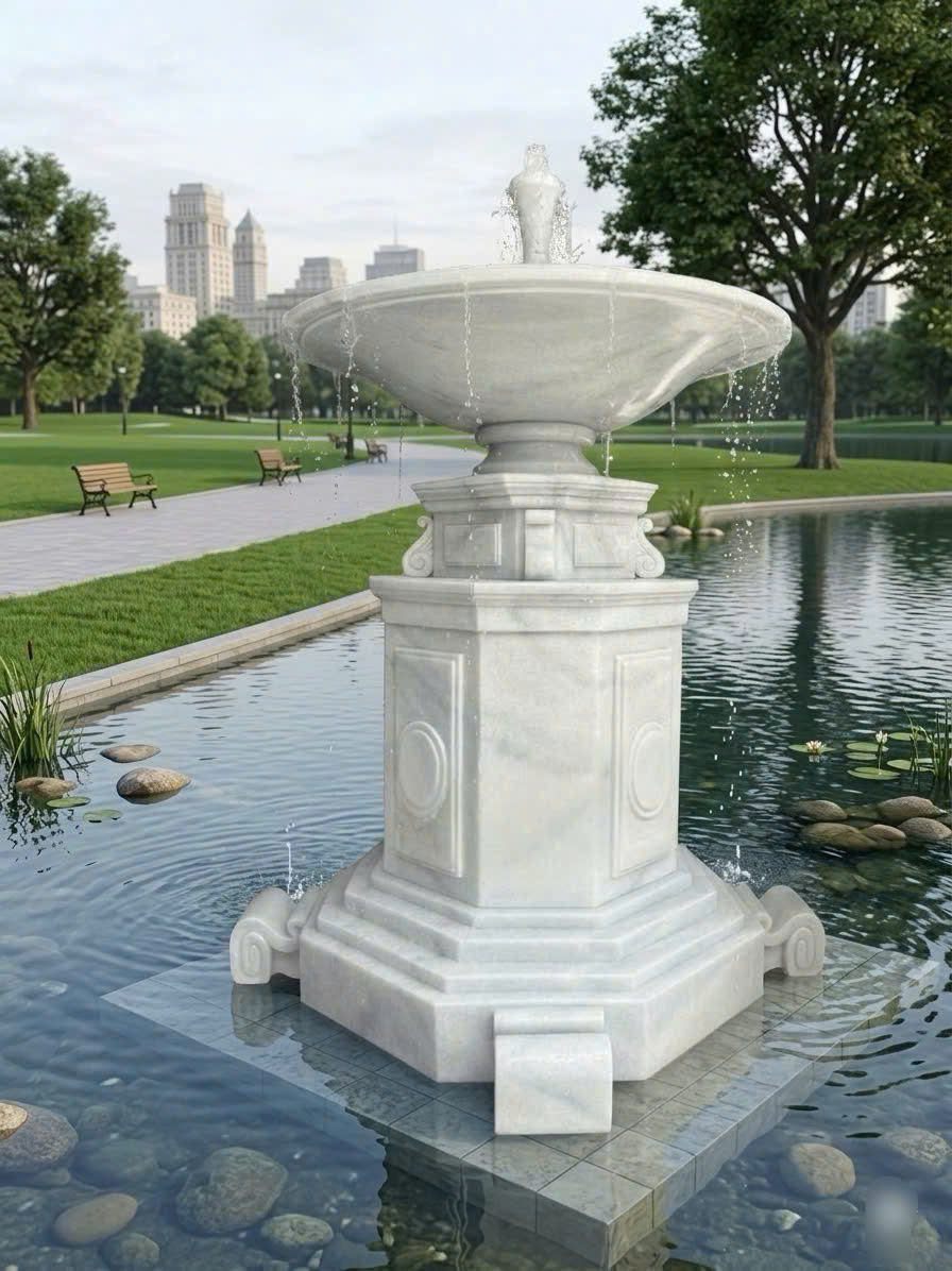 Thủy luân đá trắng nguyên khối chính là lựa chọn lý tưởng giúp kết nối con người với thiên nhiên và tạo nên không gian sống đẳng cấp.