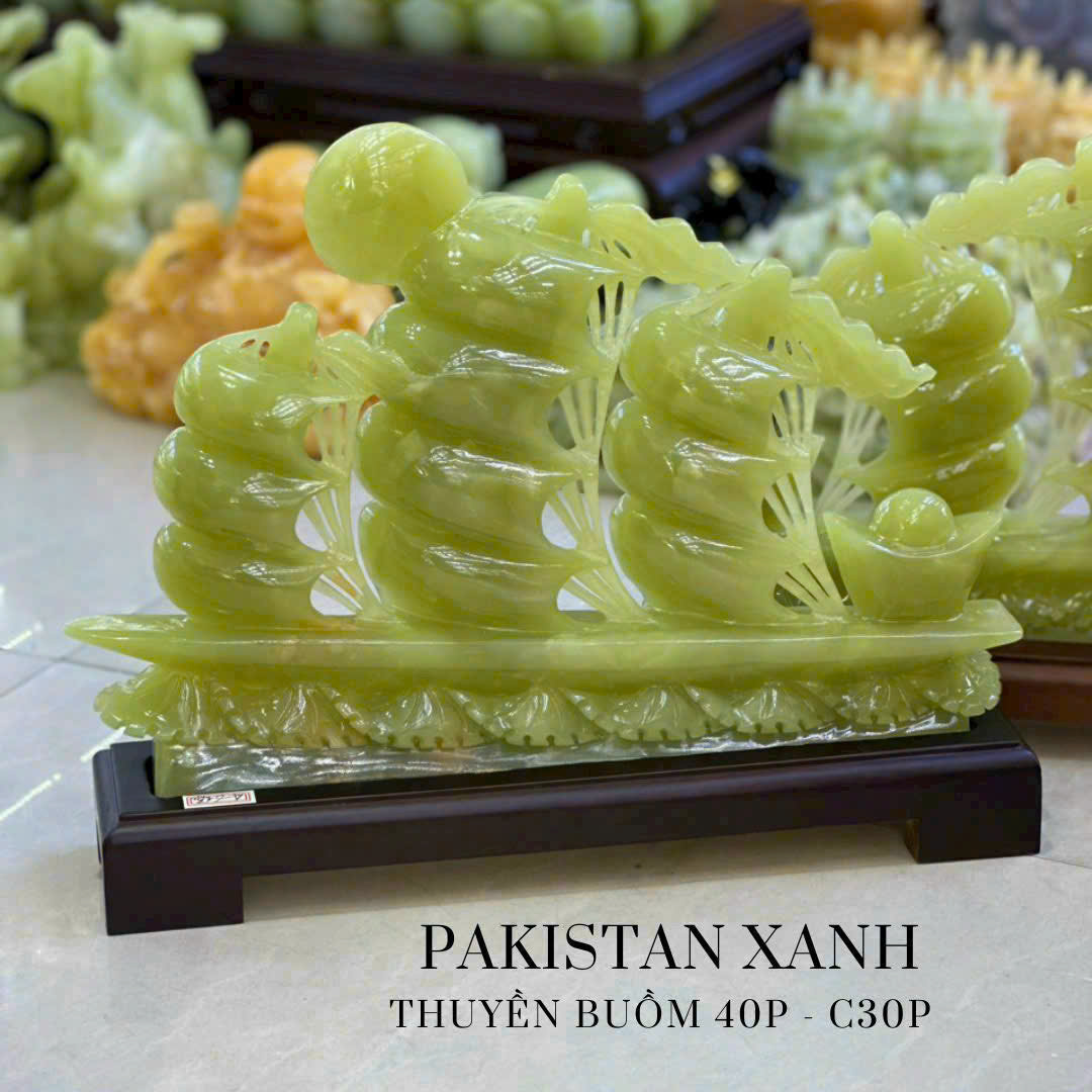 THUYỀN BUỒM ĐÁ NGỌC PAKISTAN XANH TỰ NHIÊN – BIỂU TƯỢNG THUẬN BUỒM XUÔI GIÓ, CHIÊU TÀI ĐÓN LỘC