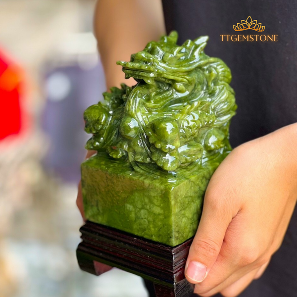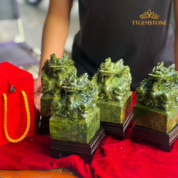Ấn rồng đá serpentine thường được đặt ở bàn làm việc, phòng khách và rất được ưa chuộng làm món quà biếu hay tân gia nhà.
