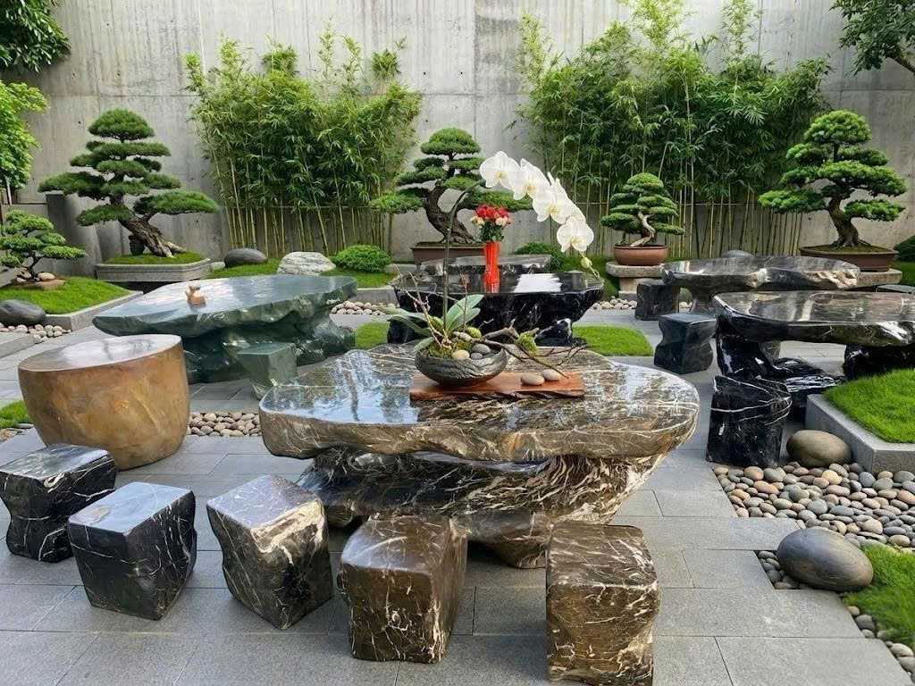 Chính vì vậy, bàn đá không chỉ phù hợp cho sân vườn mà còn là lựa chọn lý tưởng cho phòng khách, phòng ăn hoặc không gian nghỉ dưỡng.