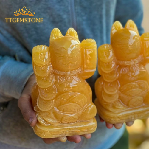 Mèo thần tài đá ngọc hoàng long tự nhiên