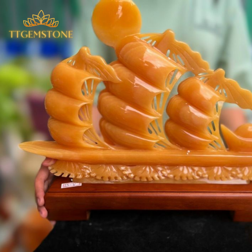 Bức cảnh thuyền buồm đá ngọc hoàng long tự nhiên