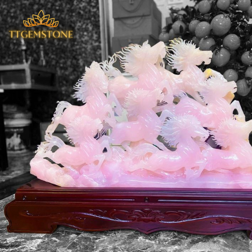Bức cảnh mã đáo thành công đá thạch anh hồng tự nhiên.