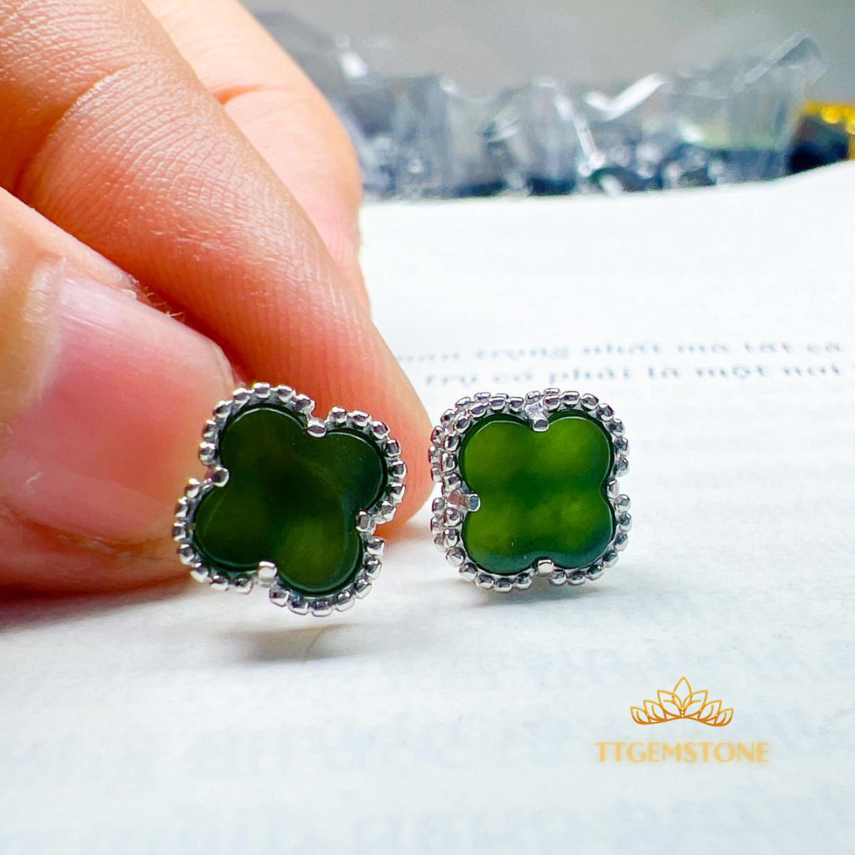 Được chế tác từ đá ngọc bích, trang sức cỏ 4 lá mang đến niềm tin, hy vọng, tình yêu và may mắn cho người đeo.