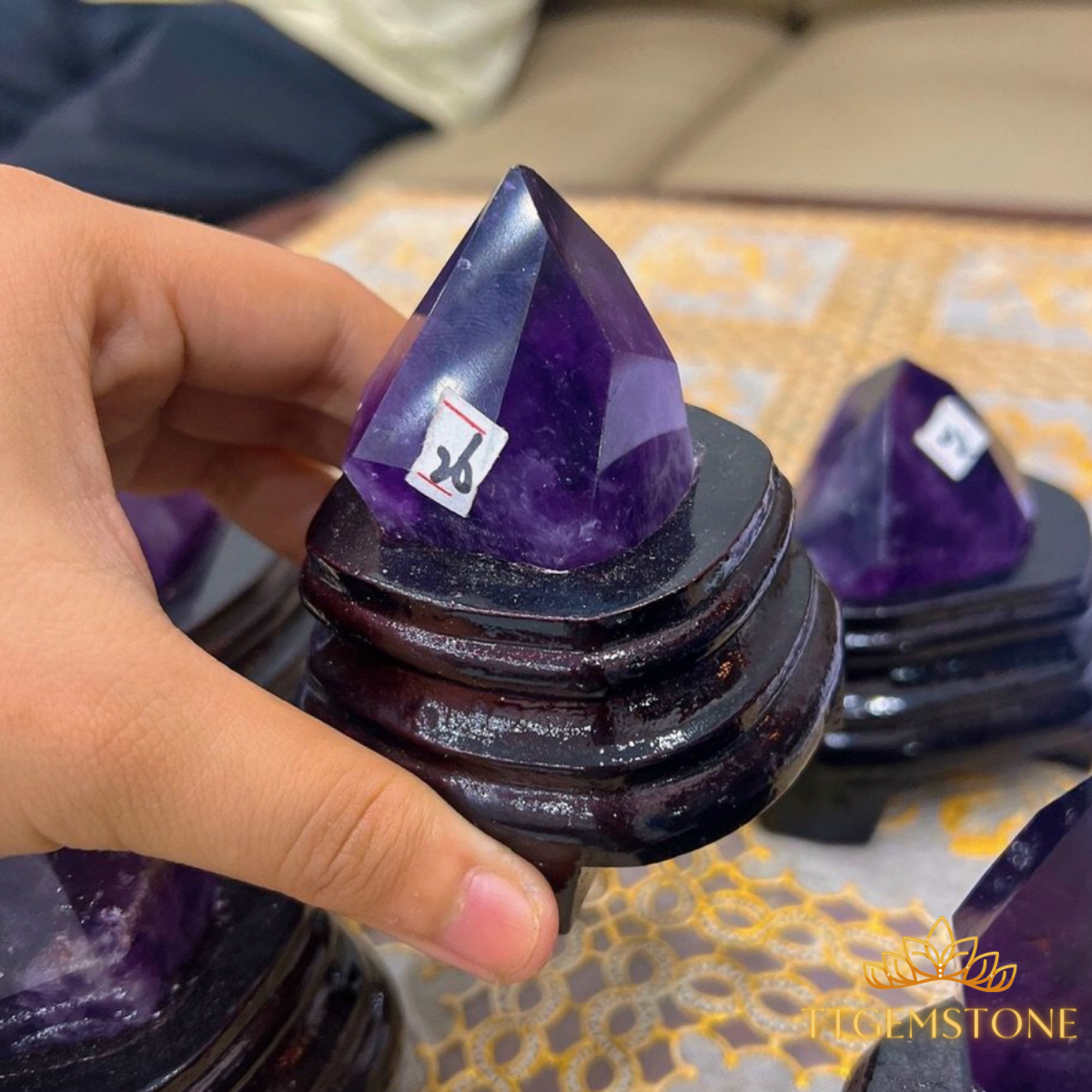 Trụ đá chế tác từ Thạch Anh Tím có khả năng loại bỏ mọi sự buồn phiền, lo âu và đồng thời mang tới cho người sử dụng tài dự đoán về tương lai. Năng lượng cảm thụ âm của trụ đá Thạch Anh Tím có công dụng tới luân xa ở đỉnh đầu. Từ đó giúp củng cố tinh thần, tăng niềm tin tín ngưỡng và các liên hệ tới các thế lực tối cao.