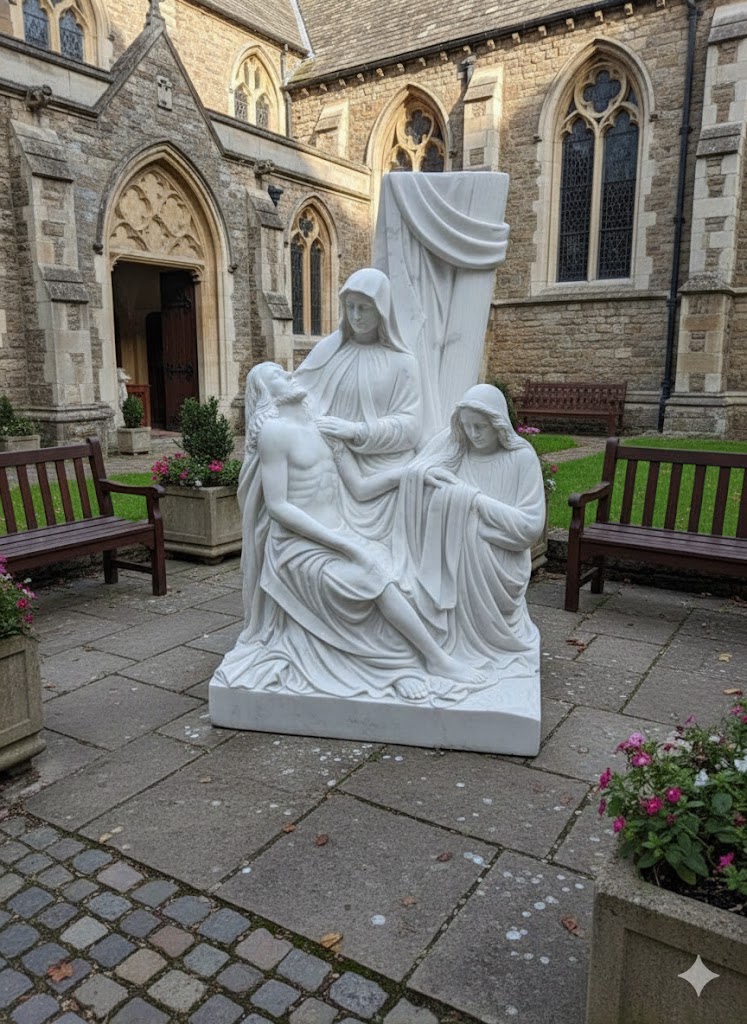 Trong không gian nhà thờ, nhà nguyện, sân vườn hoặc trước cổng gia đình Công giáo, tượng đá trắng luôn tạo nên điểm nhấn trang trọng và đầy ý nghĩa.