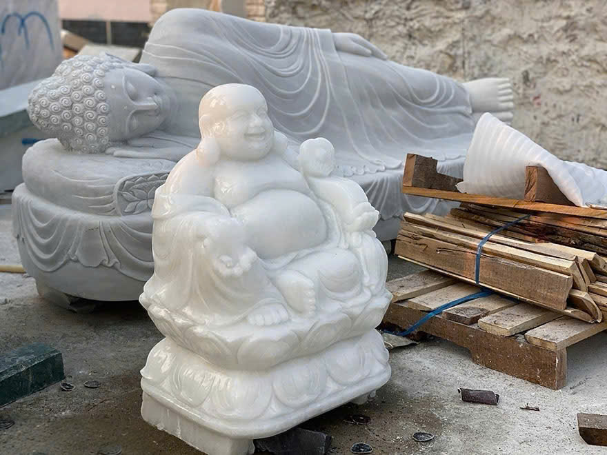 Sau khi hoàn thiện tạo hình, tượng được mài và đánh bóng để tôn lên màu sắc tự nhiên của đá, giúp bề mặt mịn màng, sang trọng và bền vững theo thời gian.