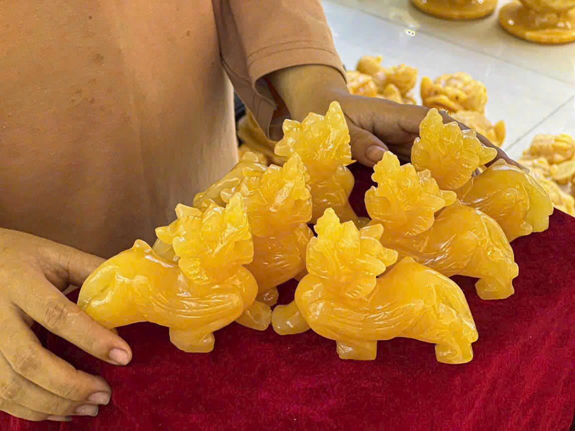 Màu vàng của ngọc hoàng long được yêu thích bởi cảm giác ấm áp, sang trọng và thu hút ánh nhìn. Khi trưng bày trong ánh sáng, tượng càng trở nên nổi bật và tinh xảo.