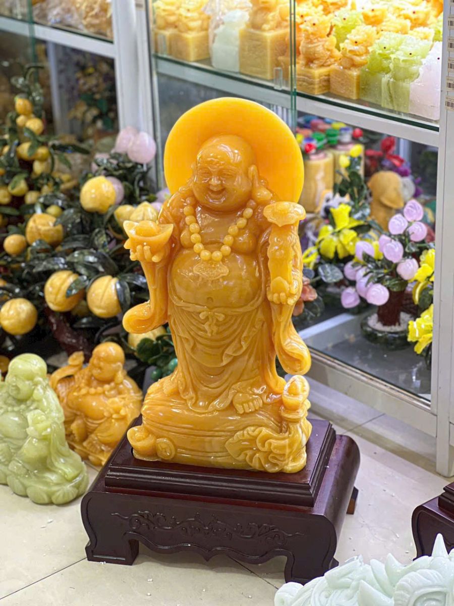 TƯỢNG DI LẶC ĐÁ NGỌC HOÀNG LONG TỰ NHIÊN NGUYÊN KHỐI DÁNG ĐỨNG