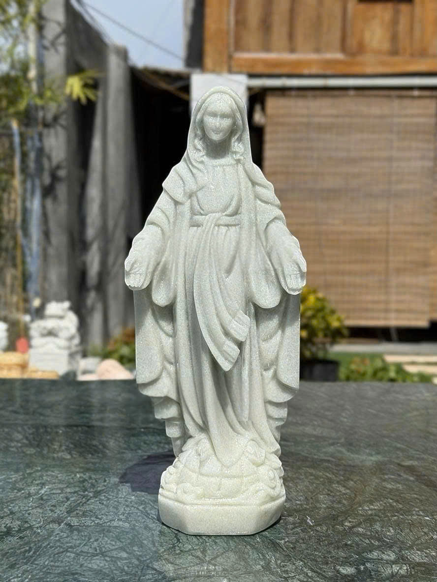 Trong thế giới nghệ thuật điêu khắc tôn giáo, tượng Đức Mẹ Maria bằng đá trắng tự nhiên là một tác phẩm mang giá trị tinh thần, nghệ thuật và nhân văn sâu sắc. Đức Mẹ Maria – biểu tượng của lòng yêu thương, bao dung và nhân hậu – được tái hiện đầy tinh tế qua bàn tay tài hoa của nghệ nhân Việt Nam.