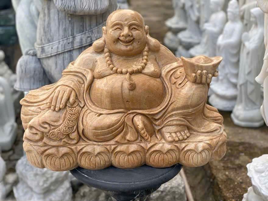 ???? Chạm khắc: Từng chi tiết từ nụ cười, ánh mắt đến tư thế ngồi được khắc thủ công tỉ mỉ, thể hiện thần thái hiền hậu, hoan hỷ.
