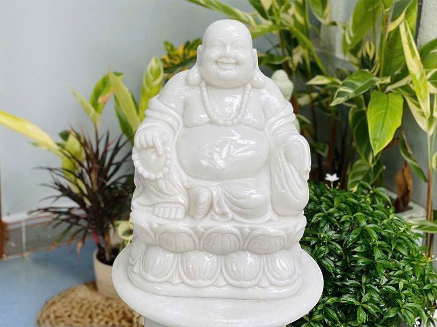 Phật Di Lặc được xem là biểu tượng của niềm vui, phúc lộc và hạnh phúc viên mãn. Trong phong thủy, việc trưng bày tượng Di Lặc bằng đá trắng tự nhiên mang nhiều ý nghĩa tốt lành: