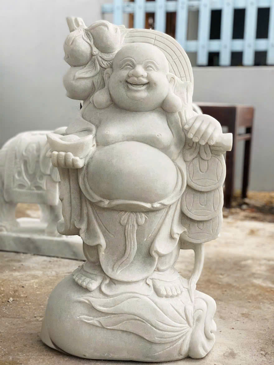 Tuổi thọ vượt trội: Nhờ đặc tính bền chắc, chống chịu tốt với thời tiết, tượng Phật Di Lặc bằng đá trắng có thể lưu giữ vẻ đẹp hàng chục năm mà không phai màu hay xuống cấp.