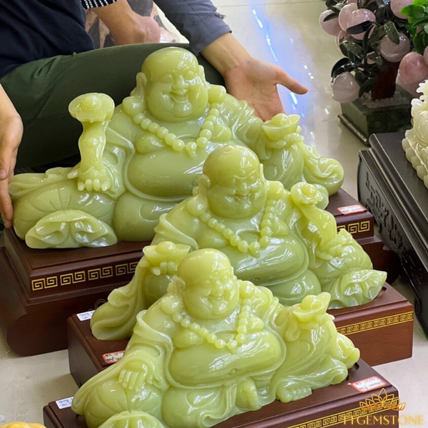 Tượng phật di lặc làm từ chất liệu đá ngọc Onyx tự nhiên màu xanh được gia công tinh xảo là lựa chọn tốt nhất giúp bạn có nhiều may mắn, hạnh phúc, hanh thông trong cuộc sống.