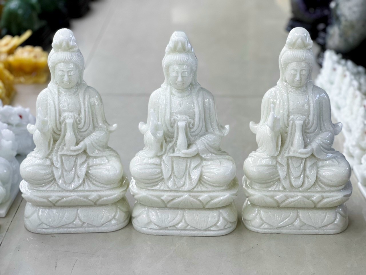 - Tượng phật quan âm đá trắng nguyên khối giúp chủ nhân bình an và mang đến nhiều may mắn trong cuộc sống.