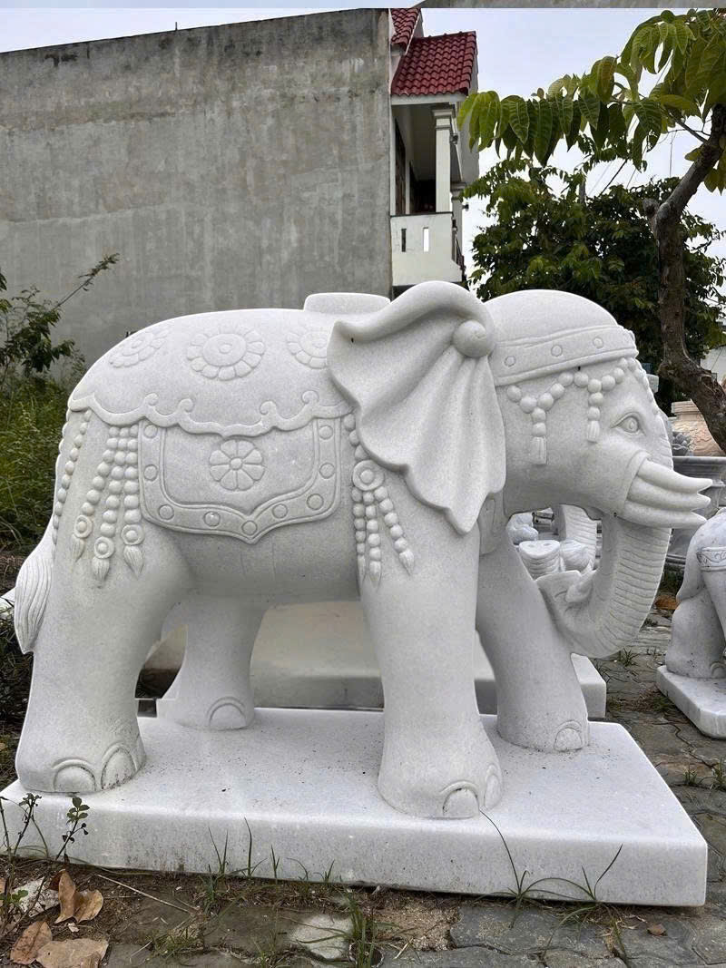 Tượng voi đá trắng nguyên khối là sản phẩm điêu khắc được chế tác từ một khối đá tự nhiên liền mạch, không ghép nối. Chất liệu thường là đá trắng tự nhiên có độ cứng cao, bề mặt mịn, màu sắc trang nhã và bền đẹp theo thời gian.