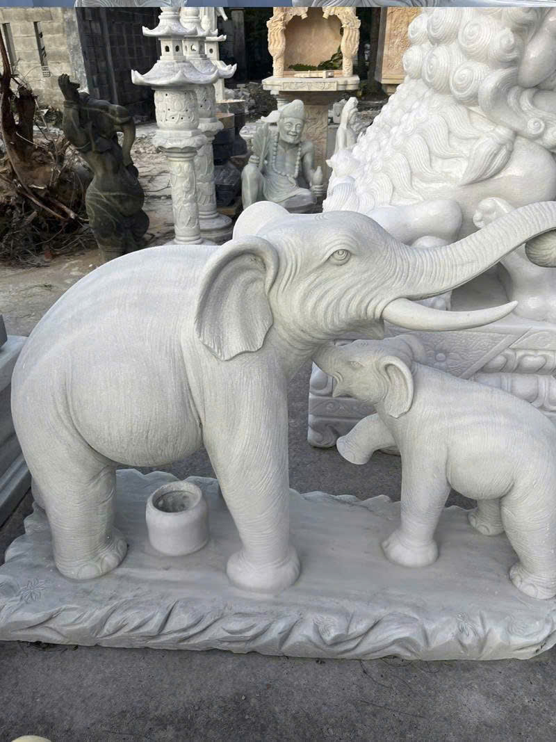 Một cặp tượng voi đá trắng đặt đúng vị trí có thể nâng tầm toàn bộ không gian, tạo cảm giác bề thế và chuyên nghiệp.