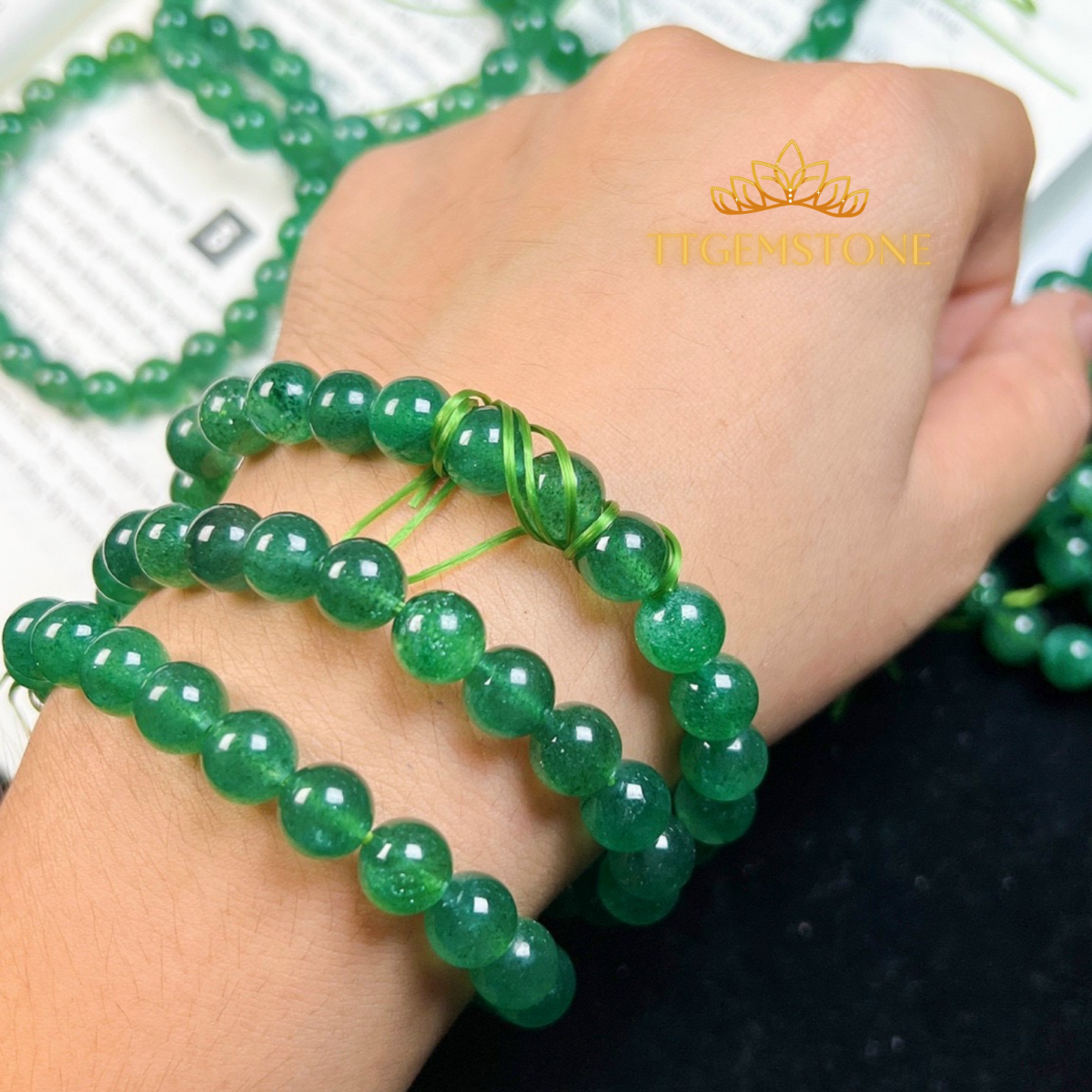 Thạch anh xanh Aventurine được biết đến với màu xanh lá cây tự nhiên và hiệu ứng ánh kim, tạo nên vẻ ngoài lấp lánh và sống động riêng biệt. Đá Aventurine là sự lựa chọn tuyệt vời cho các kiểu trang sức đá quý.