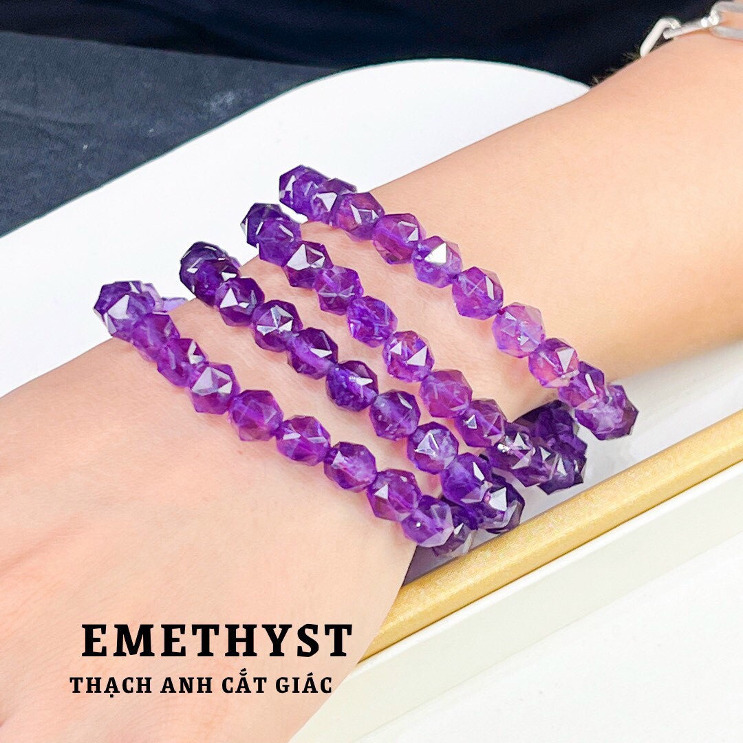 Vòng Tay Đá Thạch Anh Tím cắt mài giác giúp ngủ ngon, làm việc hiệu quả, thành công phát đạt