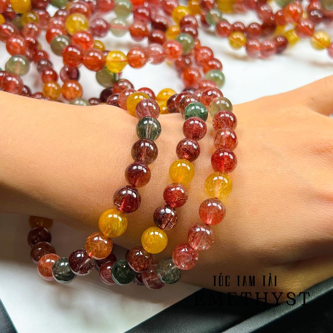Vòng tay thạch anh tóc tam tài là một trong những loại vòng thạch anh tóc được ưa chuộng. Đây là loại vòng có màu sắc đa dạng, bắt mắt. Dễ mua và sử dụng không cần xem kĩ về cung mệnh cũng có thể lựa chọn để sử dụng.