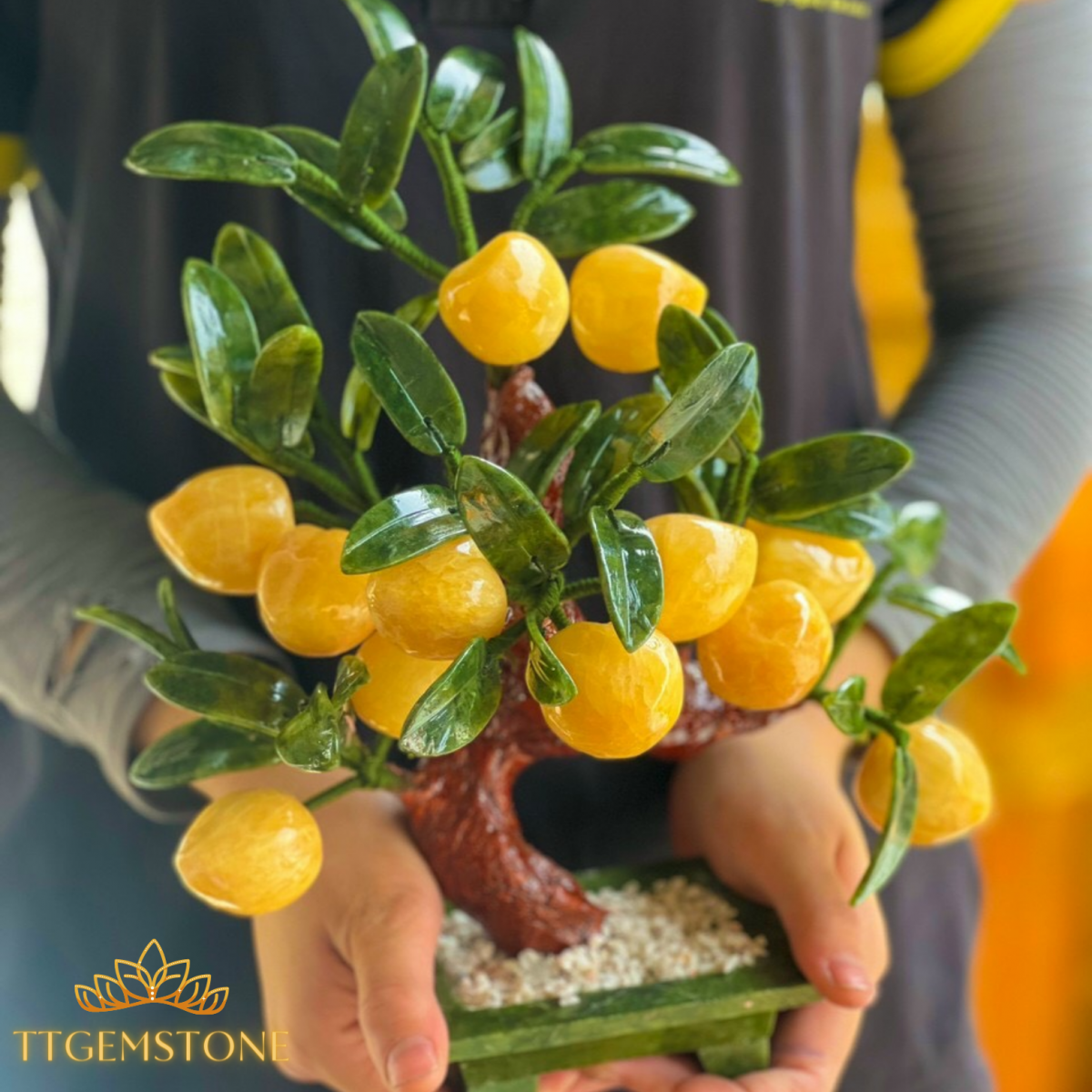 Cây đào có quả đào đá thạch anh hồng đại, lá cẩm thạch còn có tác dụng tốt cho sức khỏe vì mang năng lượng dương, vì vậy có thể đặt cây ở bên cửa sổ ngôi nhà bạn.