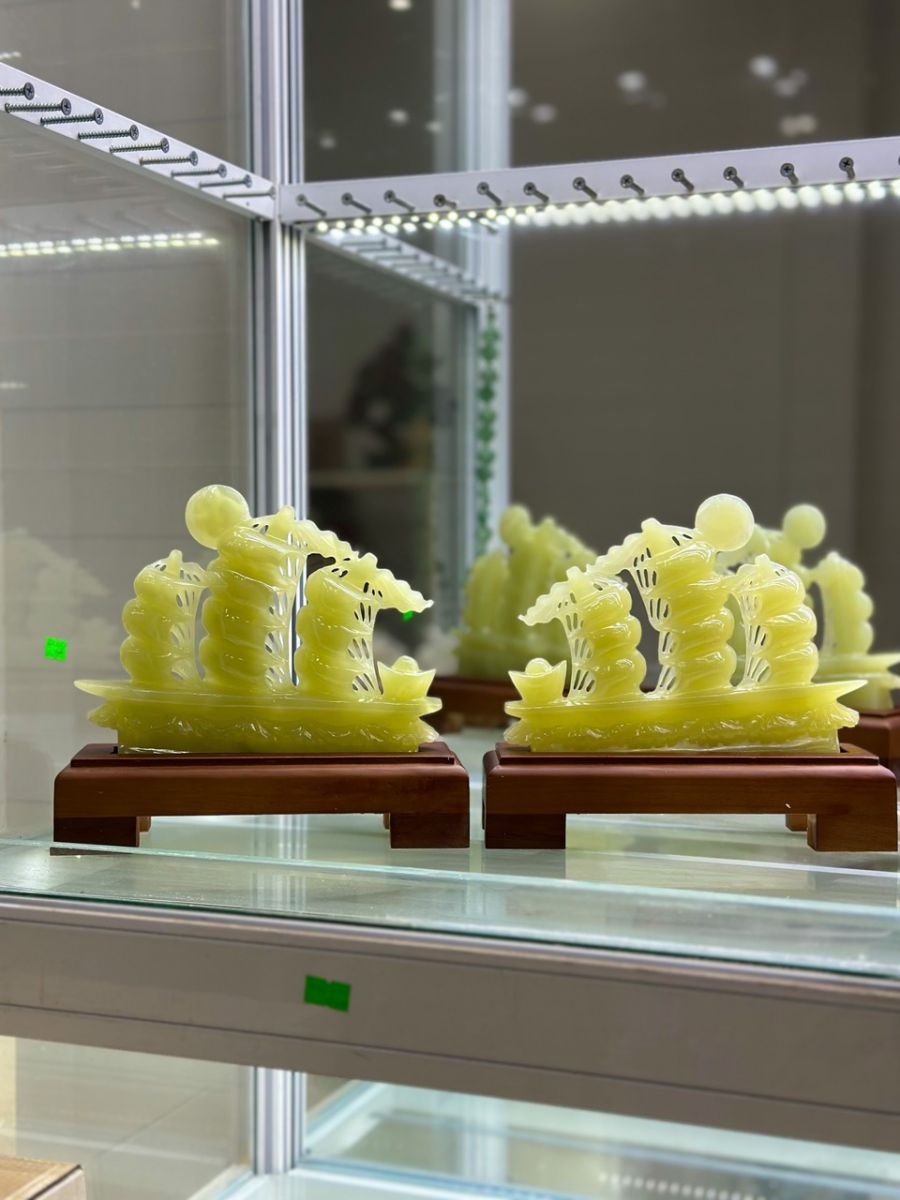 Ngọc là một loại ngọc quý, sở hữu các màu thuần khiết và uy quyền như ngọc pakistan, ngọc hoàng long và bạch ngọc rất đặc trưng và độc đáo, độ cứng thì tương đối giống với Ngọc Cẩm Thạch Jadeite và giữ được độ cứng tốt nhất trong điều kiện tự nhiên khi chế tác ra bức cảnh thuyền buồm. Với một mùa xuân nữa lại đến , hãy tô điểm cho ngôi nhà bạn bằng những bức cảnh phong phú , đa dạng , vô cùng sang trọng.