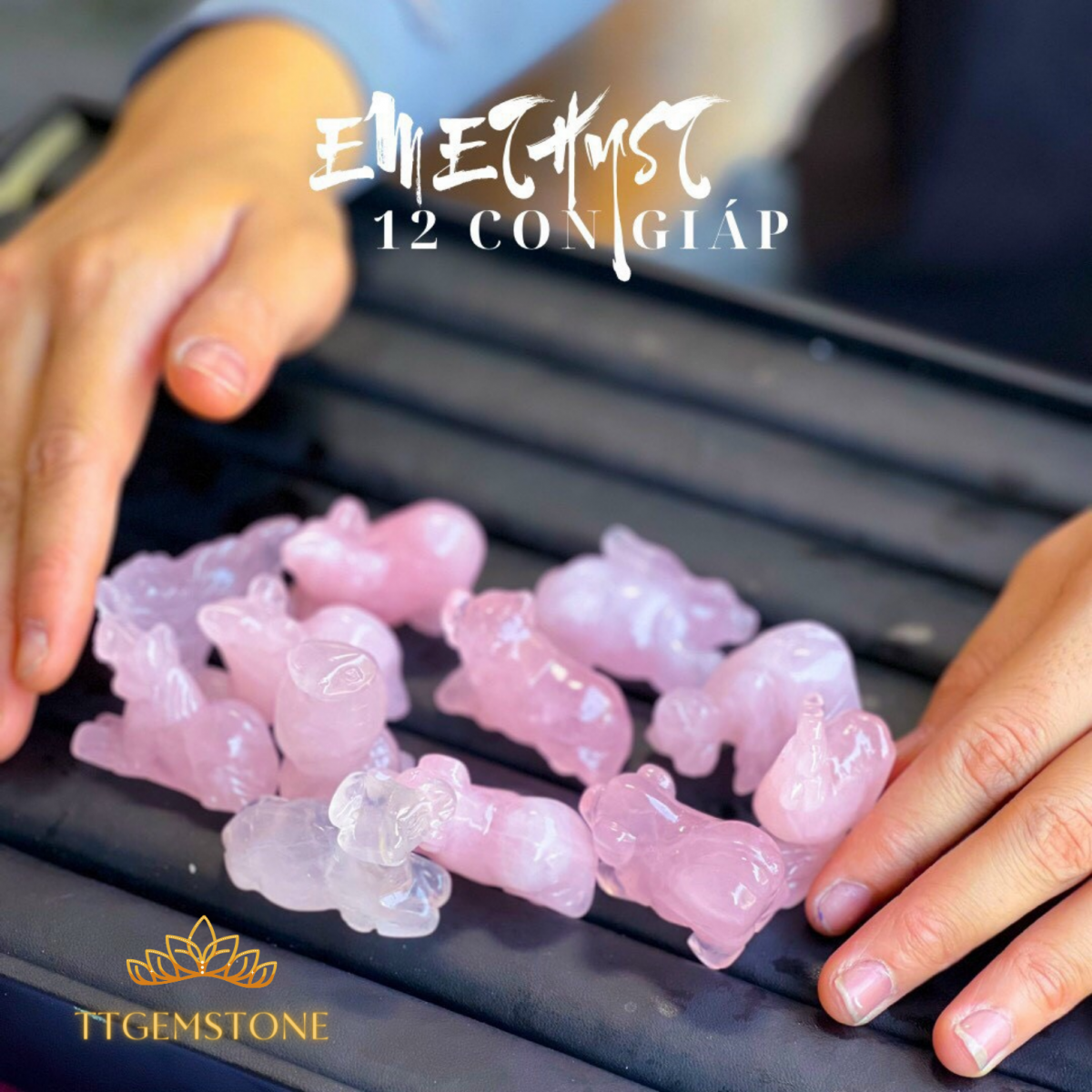 TƯỢNG 12 CON GIÁP ĐÁ THẠCH ANH HỒNG- BIỂU TƯỢNG CHO MAY MẮN THÀNH CÔNG