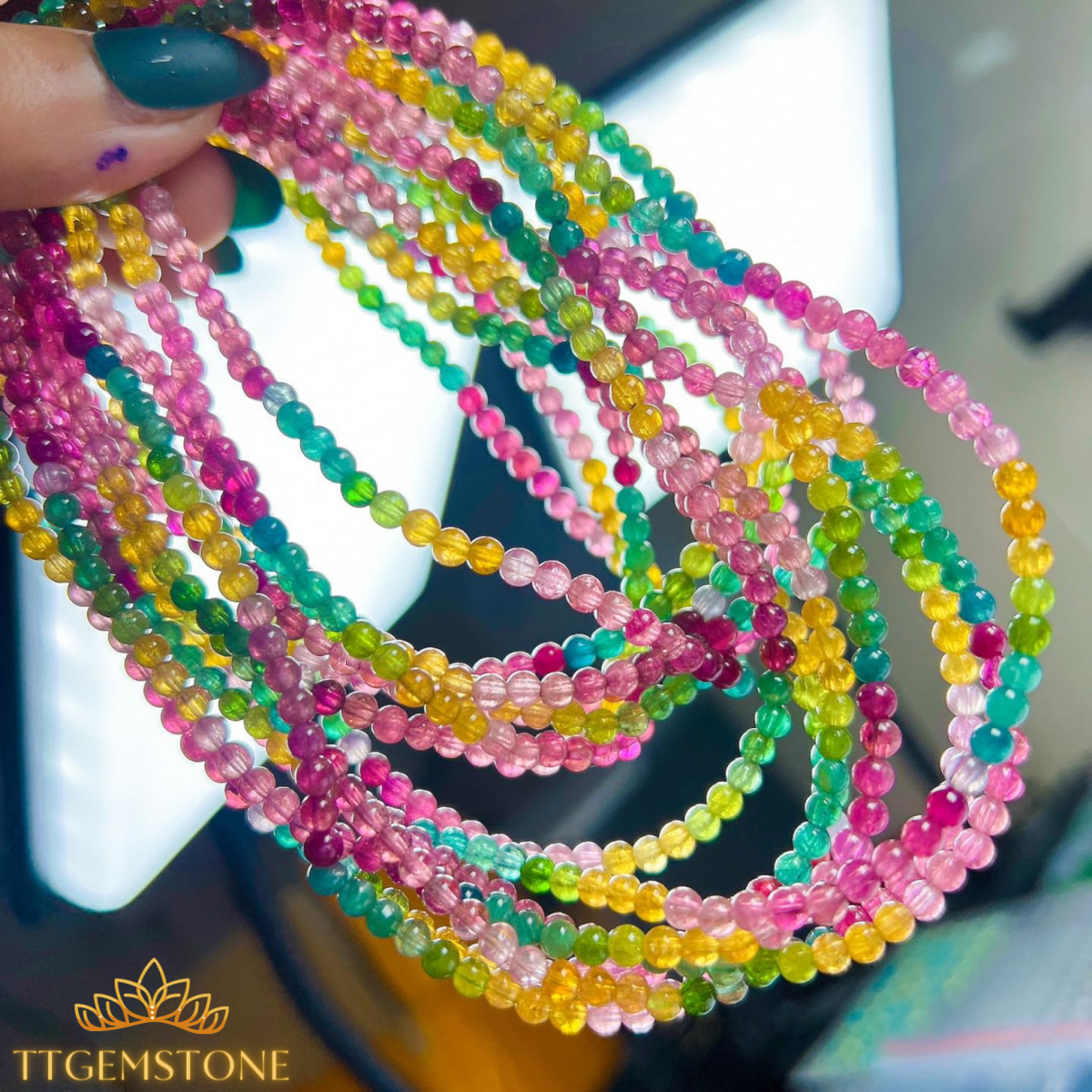3.3 Vòng tay đá tourmaline hạt vuông đa sắc