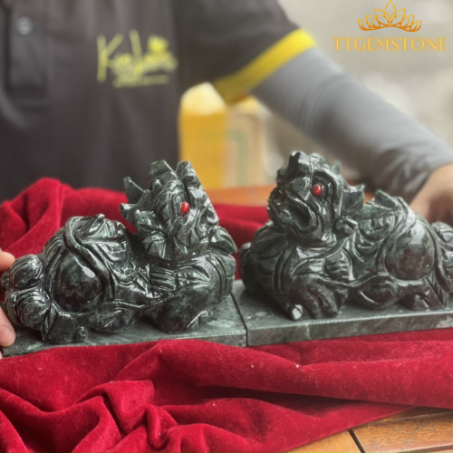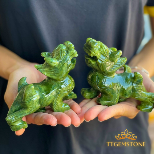 Cặp tỳ hưu đá ngọc serpentine tự nhiên